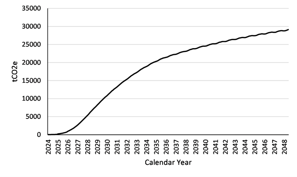 Project maturation rate for ACCUs (or tCO2e) over the 25-year crediting period (as estimated for the Project’s Land Management Strategy Document.
