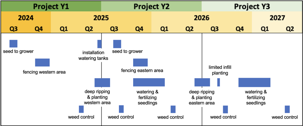 The Planting Project was formally registered on June 2024 and has entered its second year. The most labour- and capital-intensive activities are planned in the initial three years and comprise: